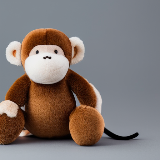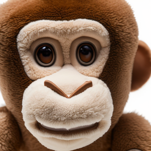 > a monkey plushie on a white background, photograph taken by steve buscemi from a zoom lens, studio lighting, ultrarealistic