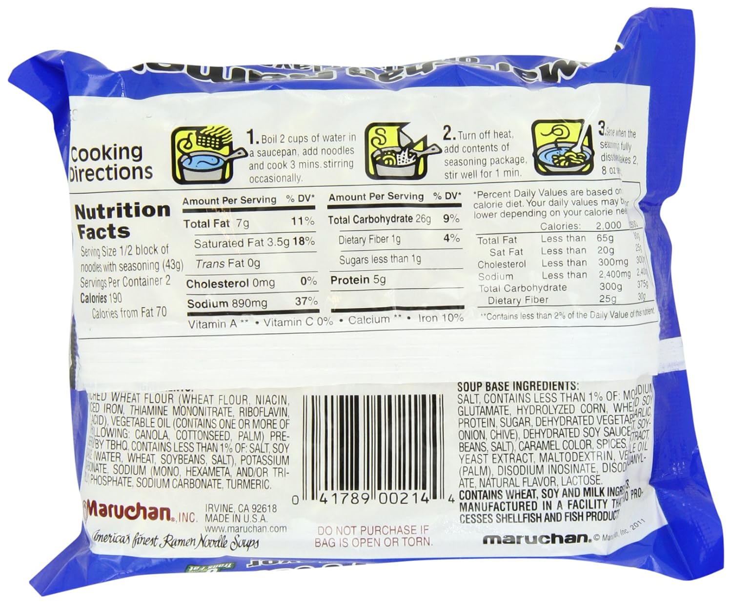 Each ramen packet has about 400 calories, add in a few vegetables and a little meat and you've got a 500-600 calorie meal. Nothing in instant ramen is inherently bad for you (unless you have high blood pressure and are sensitive to sodium intake--and even then, just eat less of the seasoning).